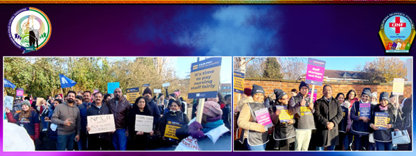 രാജ്യമെമ്പാടും നൂറുകണക്കിന് എന്.എച്ച്.എസ്സ് ആശുപത്രികളില് സമരം ചെയ്ത നേഴ്സുമാര് പ്രക്ഷോഭങ്ങള് സംഘടിപ്പിച്ചപ്പോള് നോട്ടിംഗ്ഹാമിലെ സമരക്കാഴ്ചകളിലെ മലയാളി സാന്നിദ്ധ്യം വേറിട്ട കാഴ്ചയായി. നോട്ടിംഗ്ഹാം ക്യൂന്സ് മെഡിക്കല് സെന്റര്, സിറ്റി ഹോസ്പിറ്റല് ക്യാമ്പസ്സ് എന്നിവിടങ്ങളിലെ പ്രക്ഷോഭങ്ങള്ക്ക് പിന്തുണ നല്കാനാണ് എന്.എം.സി.എ അംഗങ്ങള് എത്തിയത്. തണുത്ത് വിറങ്ങലിച്ച് നിന്ന അന്തരീക്ഷത്തില് സമരമുഖത്ത് അണിനിരന്ന പ്രക്ഷോഭകര്ക്ക് അകമഴിഞ്ഞ പിന്തുണയുമായി എത്തിയ നോട്ടിംഗ്ഹാം മലയാളി കള്ച്ചറല് അസ്സോസ്സിയേഷന് (NMCA) പ്രവര്ത്തകര് പ്രക്ഷോഭകര്ക്ക് തികഞ്ഞ ആവേശമായി മാറി. യുക്മ നാഷണല് ട്രഷറര് ഡിക്സ് ജോര്ജ്ജ്, NMCA പ്രസിഡന്റും യുക്മ മിഡ്ലാന്ഡ്സ് റീജിയണല് ട്രഷററുമായ അഡ്വ. ജോബി പുതുക്കുളങ്ങര, സെക്രട്ടറി ബിജോയ് വര്ഗ്ഗീസ്, ജോയിന്റ് സെക്രട്ടറി ബെന്നി ജോസഫ്, നേഴ്സസ് സമരത്തിന്റെ നോട്ടിംഗ്ഹാം ഏരിയ കോര്ഡിനേറ്ററായ യോഗേഷ്, സജീഷ് ഫ്രാന്സിസ് എന്നിവരുടെ നേതൃത്വത്തില് എത്തിയ NMCA പ്രവര്ത്തകര് സമര പോരാളികള്ക്ക് ആവേശം പകര്ന്നതോടൊപ്പം അവര്ക്കാവശ്യമായ ചൂട് പാനീയങ്ങളും ലഘു ഭക്ഷണങ്ങളും വിതരണം ചെയ്തത് പ്രക്ഷോഭകരുടെ ആവേശം ഇരട്ടിയാക്കി. സമര രംഗത്തുണ്ടായിരുന്ന ഇംഗ്ളീഷുകാര് ഉള്പ്പടെയുള്ള പ്രക്ഷോഭകര് നിറഞ്ഞ മനസ്സോടെയും കയ്യടികളോടെയുമാണ് NMCA യുടെ പിന്തുണയ്ക്ക് നന്ദി അറിയിച്ചത്.
