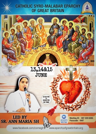 ഗ്രേറ്റ് ബ്രിട്ടന് രൂപതയുടെ ഇവാഞ്ചലൈസേഷന് കമ്മീഷന്റെ നേതൃത്വത്തില് കഴിഞ്ഞ മൂന്നു വര്ഷമായി നിത്യേന വൈകുന്നേരങ്ങളില് 7:25 മുതല് രാത്രി 9:00 മണിവരെ ഇതേ സൂം മീറ്റിംഗ് ഐഡിയും പാസ്സ്കോഡും (ID: 597 220 6305, PW 1947) ഉപയോഗിച്ച് സൂം പ്ലാറ്റ്ഫോമിലൂടെ മാദ്ധ്യസ്ഥ പ്രാര്ത്ഥനയും തിരുവചന ചിന്തയും നടത്തിപ്പോരുന്ന അനുഗ്രഹദായകമായ ശുശ്രുഷകള് തുടര്ന്നും ലഭ്യമാണെന്നും ഇതൊരു അറിയിപ്പായി കരുതുവാനും, സ്നേഹപൂര്വ്വം പങ്കുചേരുവാന് അഭ്യര്ത്ഥിക്കുന്നതായും സിസ്റ്റര് ആന് മരിയ അറിയിച്ചു.