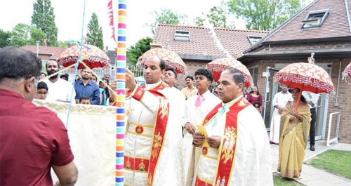മാഞ്ചസ്റ്റര്: മാഞ്ചസ്റ്റര് ദുക്റാന തിരുന്നാളിന് ഭക്തിനിര്ഭരമായ തുടക്കം. പ്രാര്ത്ഥനാ മന്ത്രങ്ങളാല് പരിശുദ്ധമായ അന്തരീക്ഷത്തില് മാഞ്ചസ്റ്റര് റീജിയണല് ഡയറക്ടര് ഫാ.ജോണ് പുളിന്താനത്ത് കൊടിയേറ്റിയതോടെ ഒരാഴ്ചയില് ഏറെ നീണ്ടുനില്ക്കുന്ന തിരുന്നാള് ആഘോഷങ്ങള്ക്ക് തുടക്കമായി. മിഷനിലെ വിവിധ ഫാമിലിയൂണിറ്റുകളില് നിന്നുമുള്ള കഴുന്നു പ്രദക്ഷിണങ്ങള് പള്ളിയില് എത്തിച്ചേര്ന്നതോടെയാണ് തിരുന്നാള് ആഘോഷങ്ങള്ക്ക് തുടക്കംകുറിച്ചുകൊണ്ടുള്ള കൊടിയേറ്റ് നടന്നത്.തുടര്ന്ന് വിഥിന്ഷോ ഫോറം സെന്ററില് നടന്ന ഗാനമേള ആസ്വാദക ഹൃദയങ്ങളില് വിസ്മയവിരുന്നായി.
