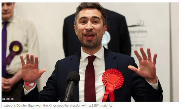 വെല്ലിംഗ്ബറോയില് കണ്സര്വേറ്റീവുകളുടെ 18,500-ലധികം ഭൂരിപക്ഷം മറികടന്ന് ലേബര് പാര്ട്ടി സീറ്റ് പിടിച്ചെടുത്തു. 28.5% മേധാവിത്തം നേടി യുദ്ധാനന്തര ഉപതിരഞ്ഞെടുപ്പില് ടോറികളില് നിന്ന് ലേബറിന്റെ രണ്ടാമത്തെ വലിയ മുന്നേറ്റമാണ്. ടോറികള്ക്ക് മുമ്പ് 11,000-ത്തിലധികം ഭൂരിപക്ഷമുണ്ടായിരുന്ന കിംഗ്സ്വുഡില്, 16.4% മുന്നേറ്റം ഉണ്ടായി.