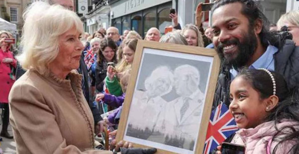 യുകെ മലയാളിയായ സിബു ബാലന് വരച്ച ചിത്രം ഏറ്റുവാങ്ങി കാമില്ല രാജ്ഞി. വളരെ സന്തോഷത്തോടെയും അത്ഭുതത്തോടെയും വാങ്ങി ചിത്രത്തെപ്പറ്റിയും കലാകാരനെയും പറ്റിയും അവര് സംസാരിക്കുകയും ചെയ്തു.