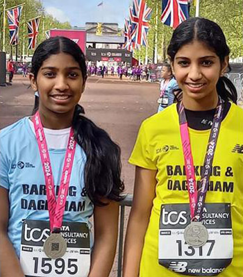 ആയിരങ്ങള് പങ്കെടുത്ത ഈ വര്ഷത്തെ ലണ്ടന് മിനി മാരത്തോണിലെ മിന്നും താരങ്ങളാണ് ഈ സഹോദരിമാര്. സ്പോര്ട്സില് തല്പരരായ ഇവരുടെ തുടര്ച്ചയായ മൂന്നാമത്തെ മാരാത്തോണ് ആണിത്. ലണ്ടനിലെ മെയിന് ലാന്ഡ് മാര്ക്കായ ലണ്ടന് ഐ, ബിഗ്ബെന്, പാര്ലമെന്റ്, ബക്കിങ്ഹാം പാലസ് എന്നിവ സ്ഥിതി ചെയ്യുന്ന വെസ്റ്റ് മിനിസ്റ്ററിലാണ് എല്ലവര്ഷവും ഈ മാരത്തോണ് നടക്കുന്നത്.