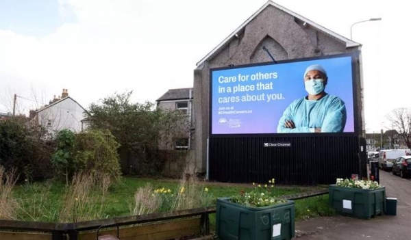 കാര്ഡിഫിലെ ലോവര് കത്തീഡ്രല് റോഡില്ലെ ഡിജിറ്റല് സൈനുകളില് രണ്ട് പരസ്യങ്ങളാണ് ഇപ്പോള് പ്രത്യക്ഷപ്പെട്ടിരിക്കുന്നത്. കാനഡയിലെ, ബ്രിട്ടീഷ് കൊളംബിയ പ്രവിശ്യ സര്ക്കാരിന്റെ വിപുലമായ പരസ്യ പ്രചാരണത്തിന്റെ ഭാഗമാണിത്. കെയര് ജീവനക്കാര്, നഴ്സുമാര്, ഡോക്ടര്മാര് എന്നിവരോട് കാനഡയില് ജോലിക്കായി അപേക്ഷിക്കാന് ആവശ്യപ്പെട്ടു കൊണ്ടുള്ളതാണ് പരസ്യങ്ങള്.
