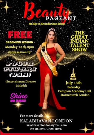 ലണ്ടനില് വെച്ച് ജൂലൈ 13ന് കലാഭവന് ലണ്ടന് സംഘടിപ്പിക്കുന്ന ദി ഗ്രേറ്റ് ഇന്ത്യന് ടാലെന്റ്റ് ഷോയ്ക്കും ഓള് യുകെ ഇന്ത്യന്(ഗ്രേറ്റ് ബ്രിട്ടണ്) സൗന്ദര്യ മത്സരത്തിനും രജിസ്ട്രേഷന് ആരംഭിച്ചു, MR / MISS / MRS കാറ്റഗറികളിലേക്കാണ് മത്സരങ്ങള്. മത്സരാര്ത്ഥികളില് നിന്നും വളരെ മികച്ച പ്രതികരണമാണ് പങ്കെടുക്കുന്നതിന് വേണ്ടി ലഭിക്കുന്നത്.