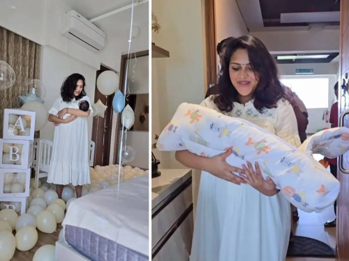 'ഇറ്റ്സ് എ ബോയ്!!, മീറ്റ് അവര് ലിറ്റില് മിറാക്കിള്, ഇളയ്' എന്ന ക്യാപ്ഷനോടെ കുഞ്ഞുമായി വീട്ടിലേക്ക് കടന്നുവരുന്ന അമലാ പോളിന്റെ വീഡിയോ വൈറലായിട്ടുണ്ട്.