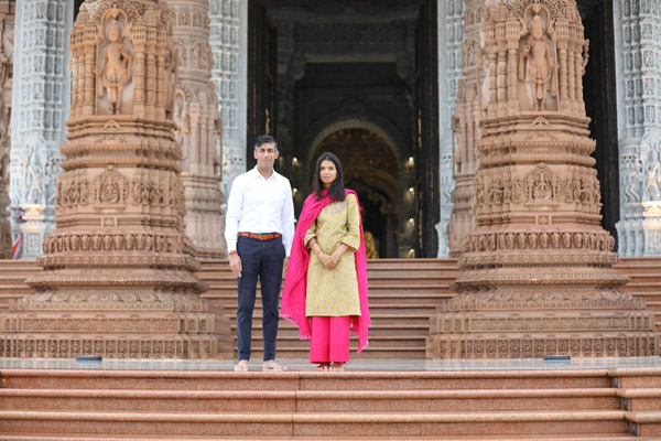 തിരഞ്ഞെടുപ്പ് അടുത്തുവരവേ ലണ്ടനിലെ പ്രശസ്തമായ ബിഎപിഎസ് സ്വാമിനാരായണ് ക്ഷേത്രത്തില് ഭാര്യ അക്ഷതാ മൂര്ത്തിയ്ക്കൊപ്പം എത്തി പ്രാര്ത്ഥന അര്പ്പിച്ച് പ്രധാനമന്ത്രി റിഷി സുനാക്. പൊതുതെരഞ്ഞെടുപ്പ് പ്രചരണത്തിന്റെ അവസാന വീക്കെന്ഡിലാണ് ദമ്പതികള് ക്ഷേത്രത്തിലെത്തിയത്. ക്ഷേത്ര പരിസരത്ത് എത്തുമ്പോള് കൈയടികളോടെയും, ആരവം മുഴക്കിയുമാണ് സുനാകിനെ സ്വീകരിച്ചത്. ഇതിന് ശേഷം ക്ഷേത്ര പുരോഹിതര്ക്കൊപ്പം ഇദ്ദേഹം പൂജ ചെയ്തു.