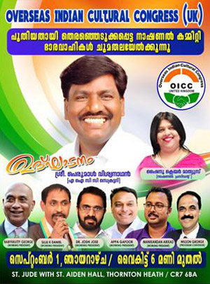 ലണ്ടന്: ഒഐസിസി (യുകെ) യുടെ പുതിയ നാഷണല് കമ്മിറ്റി സെപ്റ്റംബര് ഒന്നിന് ചുമതയേല്ക്കും. ലണ്ടനിലെ ക്രോയ്ഡനില് വച്ചു സംഘടിപ്പിക്കുന്ന വെച്ചു സംഘടിപ്പിക്കുന്ന സമ്മേളനം എഐസിസി സെക്രട്ടറി പെരുമാള് വിശ്വനാഥന് ഉദ്ഘാടനം ചെയ്യും.