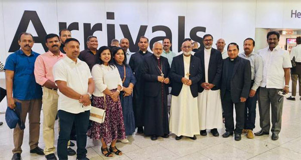 ലണ്ടന്: മേജര് ആര്ച്ച് ബിഷപ്പായ ശേഷം ആദ്യമായി ഗ്രേറ്റ് ബ്രിട്ടന് സീറോ മലബാര് രൂപതയില് അജപാലന സന്ദര്ശനത്തിനെത്തിയ സീറോ മലബാര് സഭയുടെ തലവനും പിതാവുമായ മാര് റാഫേല് തട്ടിലിന് ഹീത്രു വിമാനത്താവളത്തില് ഊഷ്മള സ്വീകരണം നല്കി. രൂപതാധ്യക്ഷന് മാര് ജോസഫ് സ്രാമ്പിക്കലിന്റെ നേതൃത്വത്തില് പ്രോട്ടോ സിഞ്ചെല്ലൂസ് ഡോ. ആന്റണി ചുണ്ടെലിക്കാട്ട്, ഫിനാന്സ് ഓഫീസര് ഫാ. ജോ മൂലശ്ശേരി വിസി, ഫാ. ജോസ് അഞ്ചാനിക്കല് എന്നിവര് ചേര്ന്ന് സ്വീകരിച്ചു.