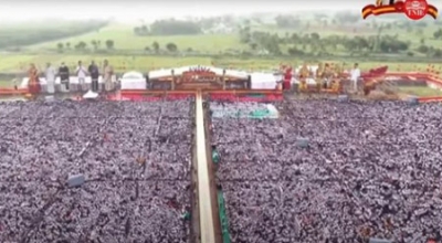 സിനിമാ സ്റ്റൈലില് ആരാധക ലക്ഷങ്ങളെ ഇളക്കിമറിച്ചു തമിഴക രാഷ്ട്രീയത്തിലേക്ക് ദളപതി വിജയ്യുടെ മാസ് എന്ട്രി. തമിഴക വെട്രി കഴകത്തിന്റെ ആദ്യ സമ്മേളനം വില്ലുപുരത്തെ വിക്രവാണ്ടിയില് നടന്നു. പതിനായിരങ്ങള് അണിനിരന്ന സമ്മേളനത്തിലേക്ക് 500 മീറ്റര് നീളമുള്ള റാംപിലൂടെ നടന്ന് അണികളെ അഭിസംബോധന ചെയ്താണ് വിജയ് വേദിയിലെത്തിയത്. ടിവികെയുടെ ഷാള് അണിഞ്ഞാണ് വിജയ് എത്തിയത്. തുടര്ന്ന് വേദിയിലൊരുക്കിയ മഹാത്മാഗാന്ധി, ബി ആര് അംബേദ്ക്കര് തുടങ്ങിയ മഹാന്മാരുടെ ഫോട്ടോയ്ക്ക് മുന്നില് പുഷ്പാര്ച്ചന നടത്തി.