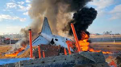 ദക്ഷിണ കൊറിയയില് ലാന്റിങിനിടെ വിമാനം കത്തിയമര്ന്നു; വിമാനത്തിലെ 179 പേര്ക്ക് രക്ഷപ്പെടാനായില്ല