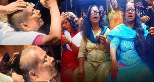 'ഇപ്പോള് ഞങ്ങള് മുടി മുറിച്ചുമാറ്റുന്നു, ഇനി സര്ക്കാര് ഞങ്ങളുടെ തല വെട്ടിമാറ്റട്ടെ തുടങ്ങിയ മുദ്രാവാക്യങ്ങള് ഉയര്ത്തിയാണ് നൂറുകണക്കിന് ആശാവര്ക്കര്മാര് മുടിമുറിച്ച് പ്രതിഷേധിച്ചിരിക്കുന്നത്. ആശമാരുടെ ഓണറേറിയം വര്ധിപ്പിക്കുക, പെന്ഷന് ഏര്പ്പെടുത്തുക തുടങ്ങിയ ആവശ്യങ്ങള് ഉന്നയിച്ചുകൊണ്ട് നടന്നുവരുന്ന ആശാവര്ക്കര്മാരുടെ സമരം അമ്പതാം ദിവസത്തിലേക്ക് കടന്ന ദിനത്തിലാണ് ആശമാര് മുടിമുറിച്ച് പ്രതിഷേധിച്ചിരിക്കുന്നത്.
