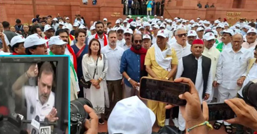 രാഹുല് ഗാന്ധി ഉന്നയിച്ച വോട്ട് കൊള്ള വിഷയത്തില് പ്രതിപക്ഷ എംപിമാര് തിരഞ്ഞെടുപ്പ് കമ്മിഷന് ഓഫിസിലേക്ക് നടത്തിയ പ്രതിഷേധ മാര്ച്ച് തലസ്ഥാനത്തെ സ്തംഭിപ്പിച്ചു. കേന്ദ്ര തിരഞ്ഞെടുപ്പ് കമ്മീഷന്റെ ഓഫീസിലേക്ക് മാര്ച്ച് നടത്തിയ പ്രതിപക്ഷ എംപിമാരെ അറസ്റ്റുചെയ്തു നീക്കിയ ഡല്ഹി പോലീസ് നടപടി സംഘര്ഷത്തിന് ഇടയാക്കി. മാര്ച്ച് പോലീസ് തടഞ്ഞതിനെ തുടര്ന്ന് എംപിമാര് റോഡില് കുത്തിയിരുന്ന് പ്രതിഷേധിക്കുകയായിരുന്നു. പ്രതിപക്ഷ നേതാവ് രാഹുല് ഗാന്ധിയുടെ നേതൃത്വത്തില് നടന്ന മാര്ച്ചില് ഇന്ത്യ സഖ്യത്തിലെ കക്ഷികളുടെ എംപിമാരെല്ലാം പങ്കെടുത്തു.