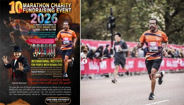 അശോക് കുമാറിന്റെ മാരത്തോണ് ചാരിറ്റി ഫണ്ട് റൈസിംഗ് ; ക്രോയ്ഡോണ് മേയറും സിവിക് മേയറും മറ്റ് വിശിഷ്ടാതിഥികളും പങ്കെടുക്കും