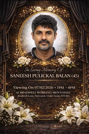 സ്റ്റോക്ക് ഓണ് ട്രെന്റില് വിടപറഞ്ഞ സനീഷിന്റെ അന്ത്യാഭിലാഷം പോലെ സംസ്കാരം നാട്ടില് തന്നെ നടത്തുവാനാണ് തീരുമാനിച്ചിരിക്കുന്നത്. സനീഷിന് ഹൃദയം വിങ്ങുന്ന യാത്രാമൊഴിയാണ് കൂട്ടുകാര് നല്കുന്നത്. സനീഷിനെ അവസാന നോക്കുകാണാനുള്ള അവസരം ഫെബ്രുവരി ഏഴിനാണ് ലഭിക്കുക. ഉച്ചയ്ക്ക് ഒരു മണി മുതല് നാലു മണിവരെ ബ്രാഡ് വെല് ഹാളില് ആണ് പൊതുദര്ശനം നടക്കുക.