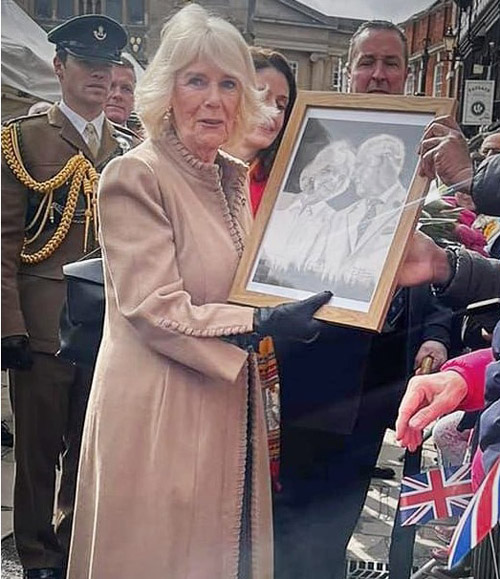 യുകെ മലയാളിയായ സിബു ബാലന് വരച്ച ചിത്രം ഏറ്റുവാങ്ങി കാമില്ല രാജ്ഞി. വളരെ സന്തോഷത്തോടെയും അത്ഭുതത്തോടെയും വാങ്ങി ചിത്രത്തെപ്പറ്റിയും കലാകാരനെയും പറ്റിയും അവര് സംസാരിക്കുകയും ചെയ്തു.