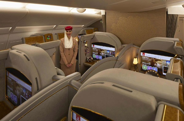 കൂടാതെ പുതിയ ബോയിംഗ് 777ല് ഫ്ലോറില് നിന്നും സീലിംഗ് വരെയുള്ള പ്രൈവസി ഡോറുകളും എമിറേറ്റ്സ് വാഗ്ദാനം നല്കുന്നുണ്ട്. സെന്റര് സ്യൂട്ടുകള്ക്ക് വെര്ച്വല് വിന്ഡോകളും ഒപ്പം യാത്രാനുഭവം മാറിമറിക്കുന്ന സീറോ ഗ്രാവിറ്റി സീറ്റുകളും ഉണ്ടാകുമെന്ന് വെബ്സൈറ്റ് പറയുന്നു. ശാന്തമായ യാത്ര ആഗ്രഹിക്കുന്ന യാത്രക്കാര് കുട്ടികളെ ഫസ്റ്റ് ക്ലാസ് കാബിനില് നിന്നും ഒഴിവാക്കിയ നടപടിയെ സ്വാഗതം ചെയ്തിട്ടുണ്ട്. അതേസമയം, സ്ഥിരമായി എമിറേറ്റ്സിന്റെ ബിസിനസ് ക്ലാസിലും ഫസ്റ്റ് ക്ലാസിലും യാത്ര ചെയ്യുന്ന കുടുംബങ്ങള്ക്കു ഇത് നിരാശ സമ്മാനിക്കുന്നു.